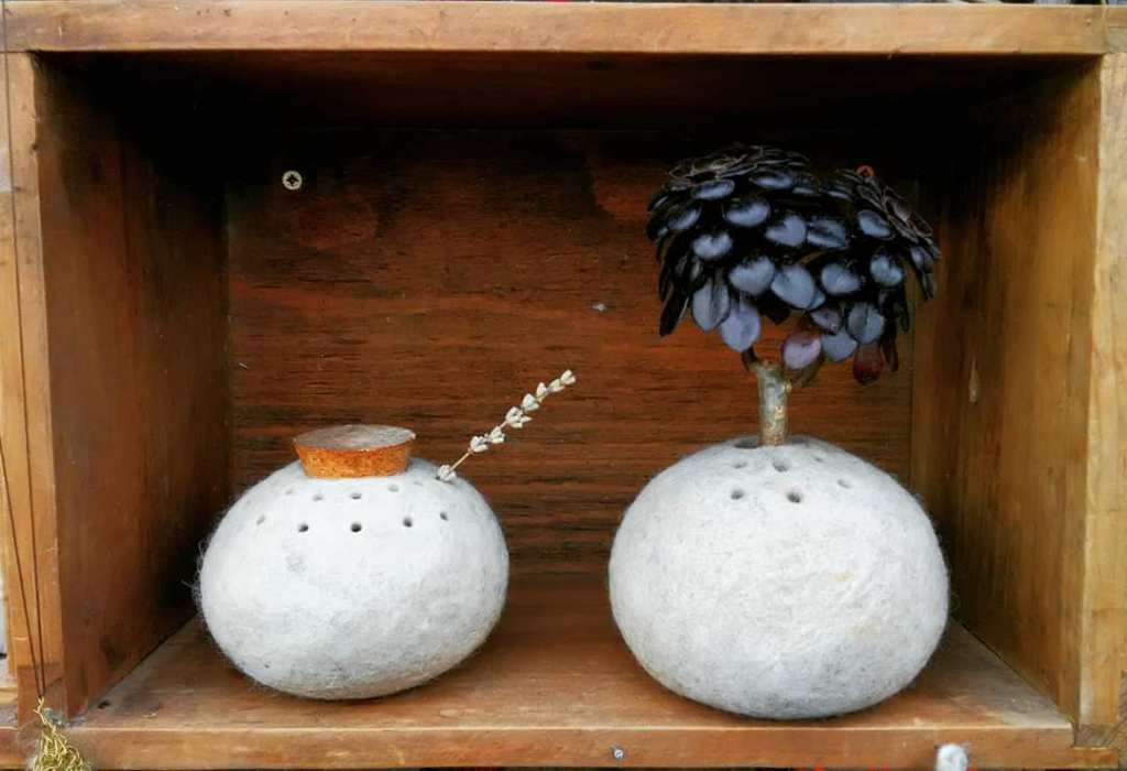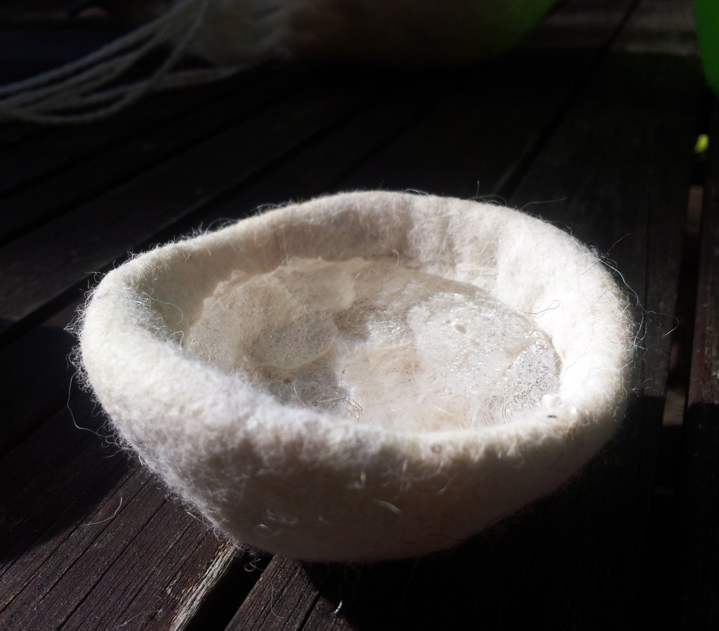 La laine a une fibre constituée d’écailles, lorsque les fibres de laine sont mouillées et soumises à la chaleur ou à la friction, les écailles s’ouvrent et s’engagent les unes dans les autres, formant des nœuds qui rendent le tissu plus serré et plus petit. Feutrer la laine consiste donc à faire en sorte que les fibres s’emmêlent, s’accrochent, se densifient et finissent par former une belle étoffe non tissée. Cette opération peut être réalisée soit mécaniquement, le feutrage à l’aiguille, soit par frottement, au contact d’eau chaude et de savon, le feutrage à l’eau.